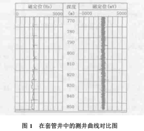 圖1是在拉15-丙XXX套管井中的測井曲線對比圖。