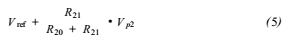 整個(gè)電路的工作過(guò)程為:當(dāng)P2.9為高電平時(shí),Q1、Q2、Q3、Q4導(dǎo)通,此時(shí)Q5的基極電流為零,Q5截止,此時(shí)P2的端口2輸出+24V的電壓。此時(shí)P2.8為低電平,Q6、Q7、Q8、Q9,此時(shí)有電流流經(jīng)Q10基極,并使其基極和發(fā)射級(jí)導(dǎo)通,Q10的功能相當(dāng)于一個(gè)二極管的作用,此時(shí)P1端口沒(méi)有電壓輸出。那么,A/D轉(zhuǎn)換器的參考輸入端Vref(+)為: