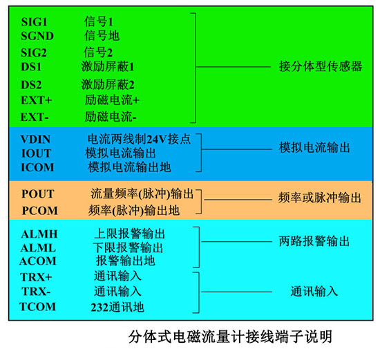 四、硫酸流量計(jì)轉(zhuǎn)換器接線端子接線圖說明