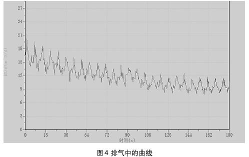 圖4、圖5中所示曲線為測量過程中所截取的集流傘中所聚集的氣相,通過排氣通道排出時與排出后的測量曲線。測試過程中錄取到的儀器排氣的過程,當(dāng)集流傘完全支開后仍需要開啟流量測試進(jìn)行實時檢測,否則可能會錄取資料失真。