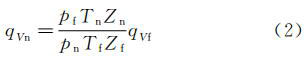 式中:qVf--工況條件下的體積流量,m3/h;qVn--標準狀態體積流量,m3/h;pf,pn--工作狀態、標準狀態流體絕對靜壓,MPa,pn=0.101325MPa;Tf,Tn--工況條件下、標準狀態流體熱力學溫度,K,Tn=293.15K;Zf,Zn--工況條件下、標準狀態氣體壓縮系數。