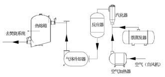 以原料萘為例。萘由原料儲罐經(jīng)液萘泵加壓后進入萘蒸發(fā)器,液萘在萘蒸發(fā)器內(nèi)由中壓蒸汽加熱汽化分離,經(jīng)流量調(diào)節(jié)閥、流量計和氣萘切斷閥后進入汽化器;空氣經(jīng)風機加壓后,經(jīng)空氣加熱器加熱后進入汽化器,氣萘和空氣在汽化器內(nèi)混合均勻后進入氧化反應(yīng)器上部,經(jīng)催化床層發(fā)生氧化反應(yīng)生成苯酐和少量的副產(chǎn)物(以順酐、苯甲酸、萘醌、和鄰苯二甲酰亞胺為主);反應(yīng)氣體經(jīng)煤氣流量計冷卻后再進入切換冷凝器進行凝華捕集,少量未被捕集的有機物和不凝氣體經(jīng)尾氣管路進入蓄熱焚燒裝置焚燒處理,焚燒后的尾氣達標排放。