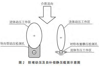 新智能分體式電磁流量計采用拋物面導向型結構作為動壓測點,采用對稱自補償型式的靜壓測點,可以有效地解決來流方向偏流時信號的穩定采集,來流偏離管道軸線時,可以維持輸出差壓基本不變,如圖2所示。