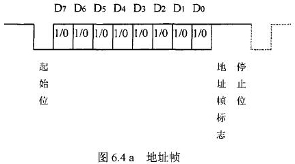 插入式電磁流量計等節(jié)點設備和站內(nèi)PC機間的通信采用異步串行通訊控制規(guī)程,并采用地址位喚醒握手協(xié)議。因此在協(xié)議中規(guī)定了傳地址和傳數(shù)據(jù)兩種不同的幀格式,如圖.64所示。地址幀和數(shù)據(jù)幀由11位構(gòu)成,幀格式為l位起始位,l位停止位,8位數(shù)據(jù)位,1位*9位。我們將*9位設定為“地址/數(shù)據(jù)指示位”,用來區(qū)分所發(fā)送/接受的幀信息是地址幀還是數(shù)據(jù)幀。*9位為1,表示PC機發(fā)送/接受的是“地址幀”*9位為O,表示主機發(fā)送/接受的是“數(shù)據(jù)幀”。命令幀與校驗和的發(fā)送格式與數(shù)據(jù)幀相同,因此可由數(shù)據(jù)幀演化得到。