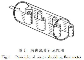 把一個阻流體垂直插入管道中,流體會繞過阻流體流動,并在阻流體兩側形成有規則的旋渦列,左右兩側的旋渦旋轉方向相反。煤氣流量計原理如圖 1 所 示。這種旋渦列稱為卡門渦街。根據卡門的研究,只有當渦列寬度 h 與同列相鄰兩旋渦的間距 l 之比滿足某個比例時,旋渦列才可以穩定存在。比如,對圓形阻流體,要求兩者比值為 0. 281。