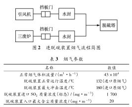 (3) 新建 1 套脫硫氦氣流量計(jì),把新建吹風(fēng)氣回收系統(tǒng)煙氣和三廢爐煙氣經(jīng)除塵后引入新脫硫塔,脫硫除塵后凈煙氣經(jīng)過(guò)塔ding煙囪排放。硫酸銨回收利用現(xiàn)有氦氣流量計(jì),新建 1 座生產(chǎn)廠房,生產(chǎn)廠房?jī)?nèi)設(shè)置硫酸銨臨時(shí)倉(cāng)庫(kù)。兩路煙氣匯總后進(jìn)入一塔設(shè)計(jì)見圖 2,煙氣參數(shù)見表 3。