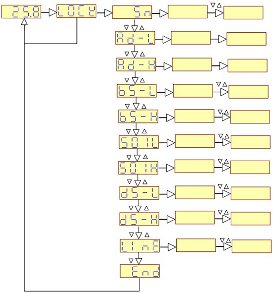 菜單 AD-L 和 AD-H 為變送器采集菜單,此菜單數(shù)據(jù)無(wú)需輸入,按 SET 進(jìn)入數(shù)據(jù)采集 以后顯示的是上次采集到的數(shù)據(jù),十進(jìn)制顯示,按位選鍵或者增加鍵開(kāi)始采集,此時(shí)需要根 據(jù)需要輸入需要采集的電阻值即可,按 SET 保存并返回菜單狀態(tài)。
