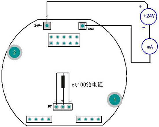 2. +24V、0V 為電路板供電和信號(hào)輸出端,兩線(xiàn)制儀表的電流為信號(hào)輸出,供電和測(cè)試,取信號(hào)如圖所示。